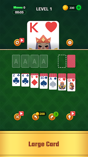 Big Card Solitaire brings you the good old fun, challenging Solitaire gameplay, with a handcrafted design for accessibility and visibility that helps elders enjoy the game even more than ever.