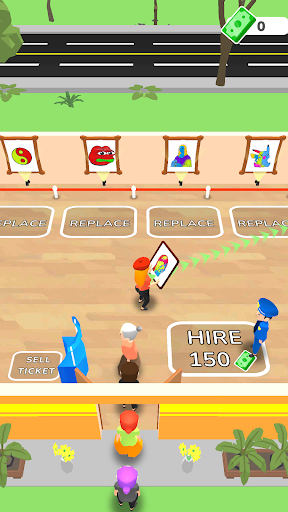 Expand your art tycoon empire by hiring personnel to sell tickets to visitors. It allows you to focus on drawing and coloring arts and running your art tycoon empire.