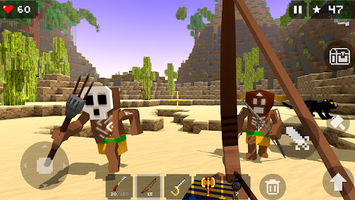 - Various types of weapons to mine blocks and survive! Use a bow, rifle, or pistol. Destroy the block world with bombs or get an axe!