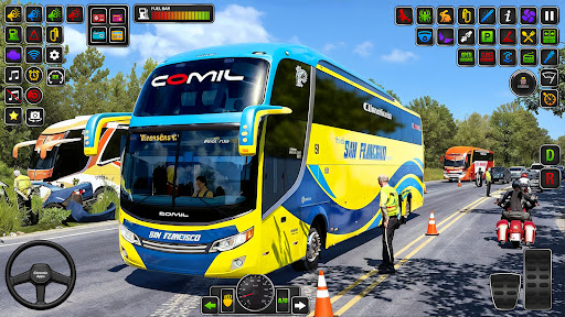 This bus simulator game has stunning graphics and smooth driving physics. Experience two exciting modes, City Mode with 10 levels and Off-Road Mode with 5 challenging tracks in a bus driving game. In offroad mode, explore different weather conditions, including snow, sunny, and desert, in this bus game 3d. Your task is to pick up passengers and drop them off at their destination in the coach bus game. Enjoy cinematic cutscenes like deer crossing roads, visits to the zoo, music concert, and even scenic spots like waterfalls and a chairlift adventure!