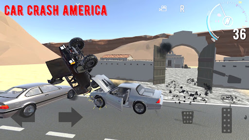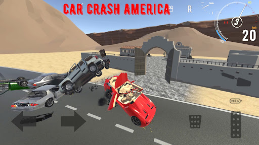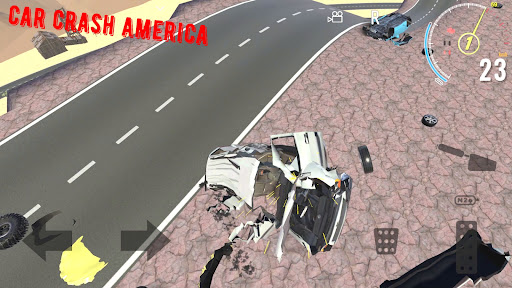 Car Crash America has 3 different maps and modes. On the South map, you can smash cars from a huge mountain by rolling them off a cliff. If you want, you can smash the cars by crashing into each other. On the West map, you can smash cars to pieces with a giant hammer roller machines in a western theme. If you drive fast in the terrain, your car will most likely break down on terrain roughness. Finally, you can crash and smash cars in a huge city with a highway on the City map. There are no limits in Car Crash America. All cars are unlocked when you play for the first time. The subject of the game is entirely your imagination and creativity required for car smashing. If you are interested in the art of car smashing, download Car Crash America now and enjoy car smashing.