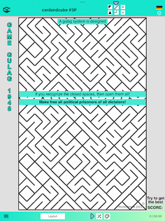 The cardandcube #3 website has instructions for two competitive games, Gulag 1948 and To Freedom! When you open dungeons in these games, you can feel yourself in spirit as a champion of democracy, plurality and freedom. Think of Beethoven's Fidelio or listen to the music as you free the political prisoners held captive by contemporary dictators in the game.