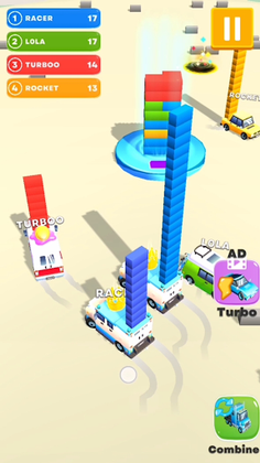 In this dynamic 3D car racing game, your mission is simple yet challenging: dominate the arena by maneuvering a variety of cars while collecting and stacking blocks and elevating to the next platform.