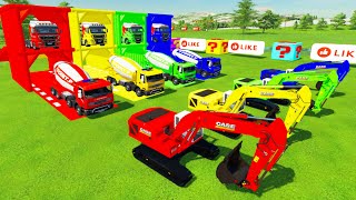 Garage With Color - COLORFUL CASE EXCAVATOR, CONCRETE MIXER TRUCK TRANSPORTING WITH MAN TRUCK#1hana farming