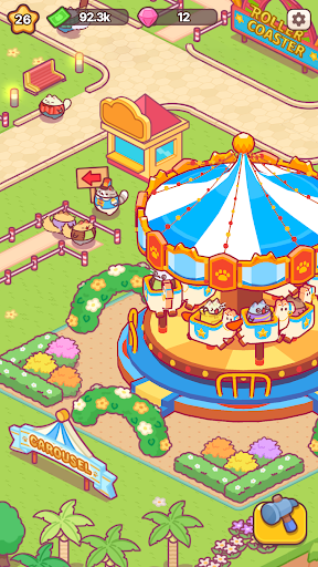 Hire talented cat managers to boost your tycoon efficiency. With their help, upgrade, operate, and build faster than ever. Thanks to the idle and offline features, your theme park keeps earning even when you're not playing!