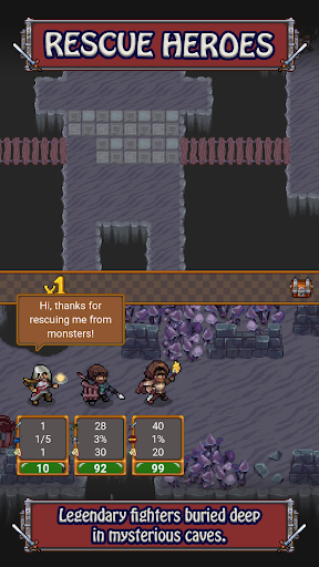 Gather a team of mighty Cave Heroes, explore endless dungeons, discover legendary loot, upgrade your heroes with powerful incremental upgrades, and face epic challenges in thrilling auto-battles.