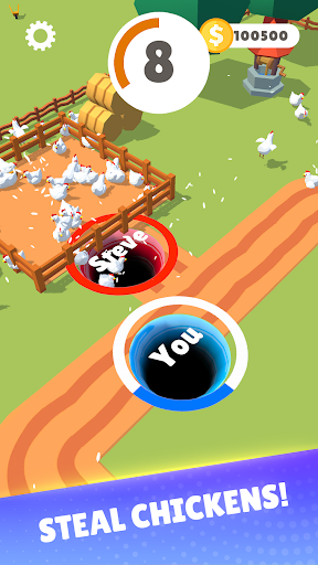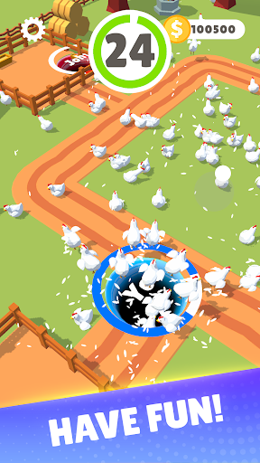 In this thrilling adventure, your mission is to gather an impressive flock of chickens for your pen, utilizing the power of a mysterious black hole.