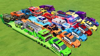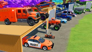 TRANSPORTING POLICE CARS, FIRE TRUCK, MONSTER TRUCK, AMBULANCE, CARS OF COLORS! WITH TRUCKS! - FS 22CineGameTube