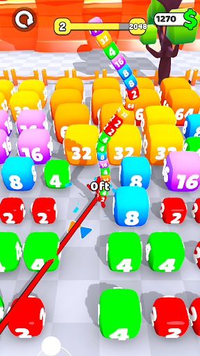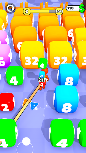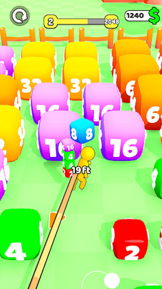 Upgrade your distance to go further, upgrade your capacity to carry more cubes and upgrade your Speed to collect them faster! Once you reach 2048 go to the next arena and Reach 4096, 8192...