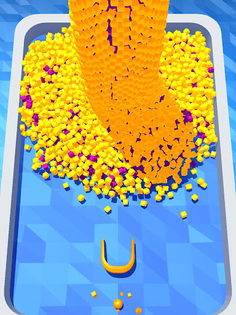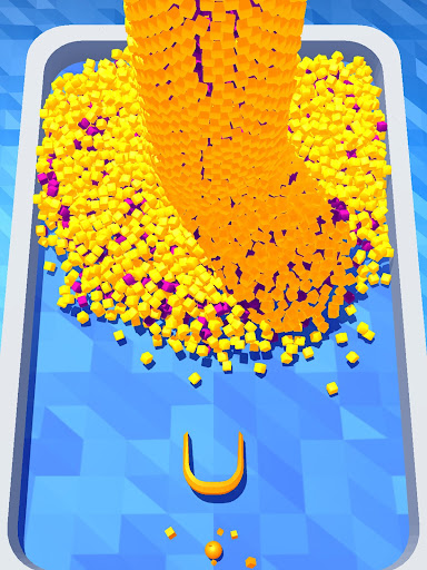 Move around the scoops and knock over 3D cube buildings to collect them.