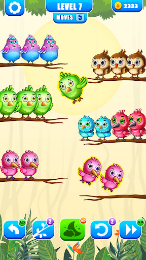 Touch the birds game you want to move to another branch in color sorting games. Bird color puzzle games have created difficulties in playing stacky birds color bird sorting puzzle games. If you do not want to get dwelled then be careful of arranging colorful birds in puzzle games. if you get stuck you can restart the level, and undo the move you make or you can add another branch by spending coins and continue playing the colorful birds sort game. In this square bird game the levels in the color bird short color are new and dense in this master with bird sort. Each bird game level will get harder than the previous color bird sorting puzzle level in this master with bird sort. There are two modes classic and challenge in color sorting games you can play in color bird sort puzzle games. Enjoy the best graphics in the colorful birds sort game with ASMR effects and different birds' ASMR sounds.