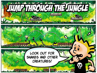 Starting out in a jungle, your dash adventure to find your way out continues onto the BEACH, DESERT, GOLD MINE and more! Each environment has its own set of enemies and traps. They will become progressively more and more difficult as you venture deep into the comic book.
