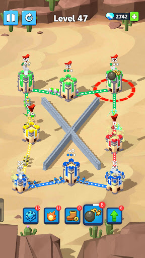 Swipe your finger to connect towers. What you need to do is to lead the blue soldiers to guard your own tower while occupying towers of other colors.