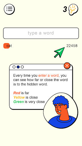 The goal of the game is simple - to guess the secret word. However, to achieve this goal, players need to use their logic and intelligence to input word variations that may be close to the secret word. The game's AI helps the player understand how close their answers are to the solution. The number of attempts is unlimited, allowing players to experiment and find the best answer.