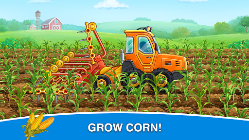 Growing corn cobs together with intelligent machinery and modern farm technology is great fun! Let your kids 20 min of being totally absorbed by our interactive educational truck games for toddlers! Anyone, boys and girls, are very welcome here to play with colorful cars and farm simulators to eventually grow their first ever real harvest of SWEET CORN!