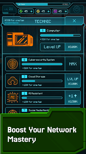 Welcome to Crack the Future – the ultimate cyberpunk clicker game where every tap brings you closer to becoming a legend in the digital underworld.