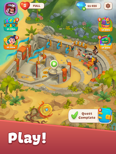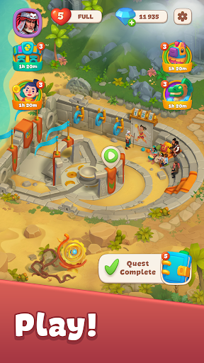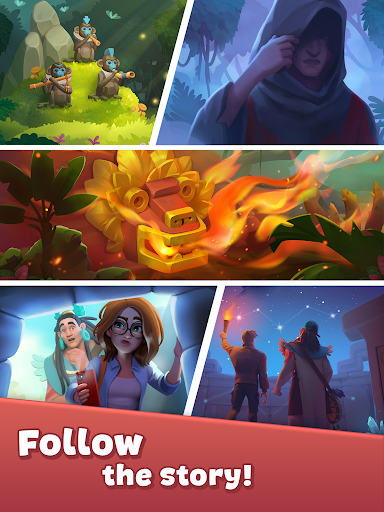 Explore the treacherous island and merge crystals, matching tiles, and collecting gems and boosters in exciting and engaging games for kids and adults alike. With each level, unlock new features, including colorful boosters and ancient architecture, allowing you to build a new settlement.