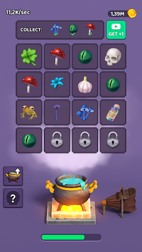 In order to collect ingredients for potions, you need to use the alchemy merge. Collect new ingredients, upgrade your cauldron and unlock new potions!