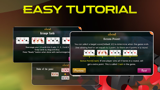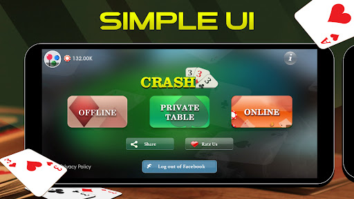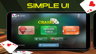 The game is popular in Northern England and South Wales, and it is reported it is played in Edinburgh and Plymouth by the named Crackers. This particular game is known to have numerous variations. In Crash, a player receives thirteen cards and divides them into four sets. Players generally aim to reach a total of 15 points, gained over successive deals. In this mobile game, the users can select 7 to 15 points to end a game.