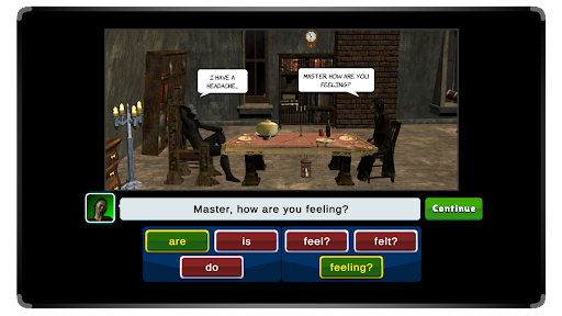 It's easy. The game consists of animations and comics with dialogues. Choose the words to form correct English sentences and dialogues.