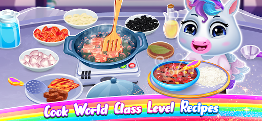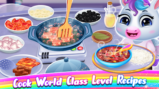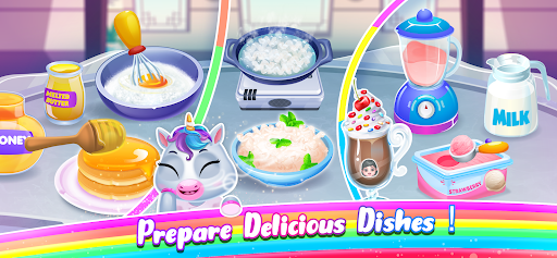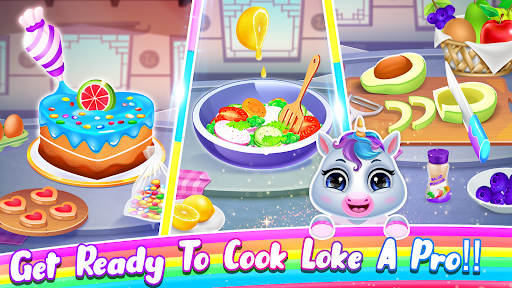 -Play fun games with little girl Unicorn and cook Delicious food.