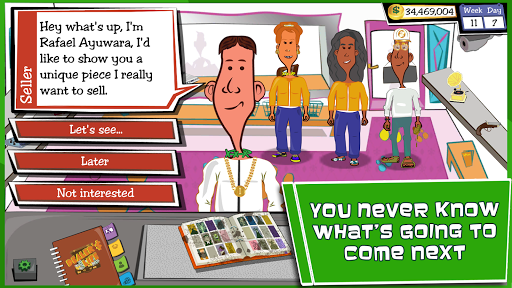 Take advantage of your employees by hiring the best experts, restorers, profilers, analysts, clerks, and more to help you in your business, buying, repairing, estimating, and reselling for huge gains. The game features a range of humorous elements as well as quotes from cult movies and videogames, making it a unique experience every time you play. Thousands of fake customers exhibit unique behaviors and character traits that affect the negotiation process based on their external appearance and psychological traits. Use your Insight skill to study and identify who you're dealing with and act accordingly to close beneficial deals.