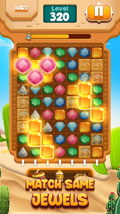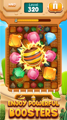 No one knows whether in this arid place is hiding the precious treasure that challenges adventurers to unveil the secret. Do you love an exciting adventure? Play Desert Jewel, you'll be a diligent wanderer with his great curiosity to find the biggest treasure while matching the jewels.