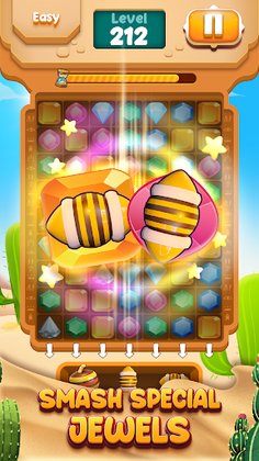 - Match 5 to create special jewel and match it with the neighboring jewel to eliminate the same jewel on the board
