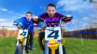 AMAZING RACE Backyard Games CHALLENGE! No Rules Dirt Bike Battle Showdown! | Steel KidsSteel Kids