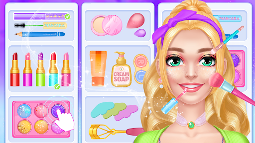 Get inspired by a wide range of creative ideas and styles at our salon in the girl’s make-up game. Become a perfectly matched makeup stylist in our salon, with a complete fashionable hairstyle and outfit story.