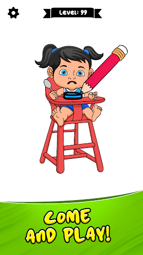 You are sure to find a missing part in the beautiful picture, you just need to draw a line to draw the missing part of the image and thus complete the image or solve the problem that the characters in the image are facing. Rabbit missing an ear? All you need to do is draw another ear and let the rabbit run. The cops are catching bad guys and forgot their guns? Draw a weapon to help him catch the fugitive in no time. Has a peach been bitten? Make the peach complete its original shape again with a simple line. There are many more scenes waiting for you to complete.