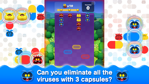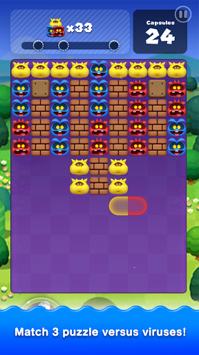 This game is a match-3 puzzle that challenges players to use their strategy skills to eliminate viruses from Dr. Mario's world. The game consists of red, blue, and yellow capsules that you can tap, rotate, and position to match three or more objects of the same color vertically or horizontally. With over 600 stages across various themed worlds, users must clear the viruses in each level before running out of capsules. The game provides obstacles like blocks, cages, and bubbles that players must clear to progress.