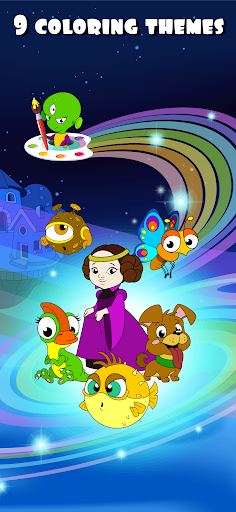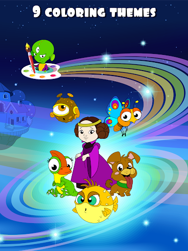 Toddlers love to draw and color pictures! The game contains 135 pictures from 9 different categories that will be equally interesting for girls and boys. Coloring for kids helps to develop creativity, perseverance, motor skills. Kids can color animals, princesses, cars, sea creatures, dinosaurs, food, aliens, houses, and garden. Colorings games for girls and boys is the best way to spend time learning with fun!