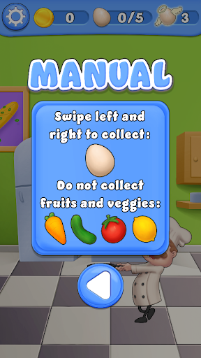 🎮 With intuitive controls that even the littlest chefs can master. Simply swipe to catch the eggs and avoid the fruits and vegetables. It's so easy, even a beginner can become an egg-catching master! 🌟🔥