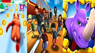 Subway Track Surf Run Fun 2021 VS Animal Rush : Endless Run Games VS Rhibo - Runner Game GameplayRunX24