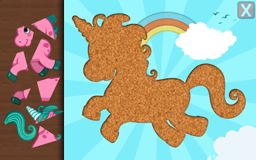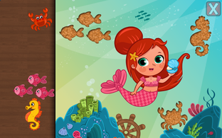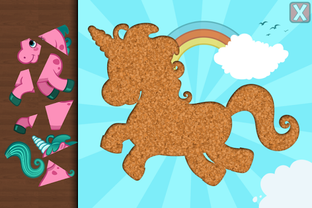Fun fairy puzzles game for toddlers and kids from ages 1 to 6 featuring many cute cartoon fairy tale figures such as a forest fairy and her animal friends, a mermaid and her underwater friends, the ice queen, alice playing tea party, a fairy riding her unicorn pony and more in 29 shape & tangram puzzles!