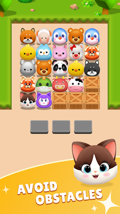 The goal of the game is to clean the playing field by matching the same three animals. You can tap to place them into the stack, but remember you have only seven places in the stack. Plus, you can find your way through barrels, pipes, floating ice, and metal cages. Once you clear the board, you win!