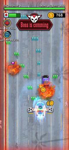 • Shooting and collect coin, item to upgrade your car and your Drone