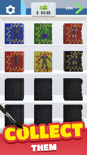 Sculpt custom action figures in your Idle shop in DIY games. Fill your Toy Store with all your finished superhero Figures in painting games. Raise money to open the next Anime Action Figurines in the toy store in Art Games. Unlock new plinths, colors, and textures to apply in DIY design games.
