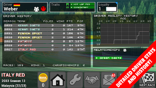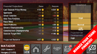 * Manage your accounts, upgrade your car, invest in Research and Development