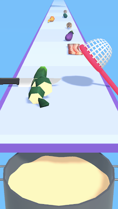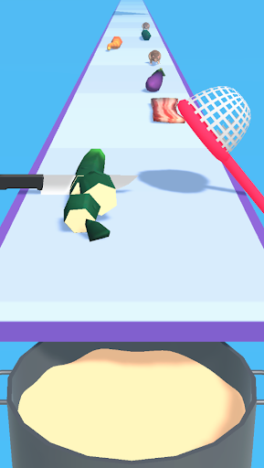 Tap to switch between the kitchen knife and the net.