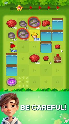 - You can go to the area where there is a flower with a number lower than your character's score and get the flower.