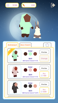 You can buy and collect various spacesuits and rabbit friends.