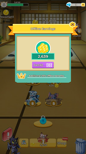 - Place your cats to earn golds. Even get the benefits offline..