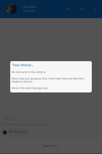 Get ready to immerse yourself into an interactive chat story game, Friendzoned. The story begins with meeting Amy Belle and sending her a friend request, which progresses further into texts. The game lets you decide how the storyline flows – whether it is a pure friendship or a love story. Friendzoned is a texting chat story and SMS game with 1000 possible choices that impact the storyline.