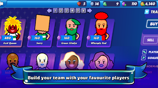 With players in the form of everything from memes and zombies to aliens and monsters (the possibilities are cosmic), your task is to train their 5 skills to the maximum level to get them performing at their best. Earn coins by winning matches to buy and sell players in the marketplace. All available players are listed by position and rarity, from Normal to Galaxy.