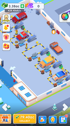 Initially, you'll only be able to profit from one garage space. As you upgrade and unlock more spaces, coupled with advancements in maintenance technology, customer traffic will skyrocket. Besides expansion, don't forget to improve the customer experience! Use your earned coins to upgrade your humble garage into a luxurious rotating elevator garage. Unlock restaurants, restrooms, supermarkets, and more, experiencing the true joy of management. The sense of accomplishment when your daily revenue surpasses a trillion will get your adrenaline pumping! Come and experience this immersive garage tycoon journey!