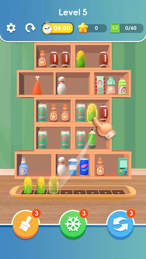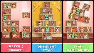Match three objects in each compartment to clear them in casual triple match 3D games & organizing games offline.