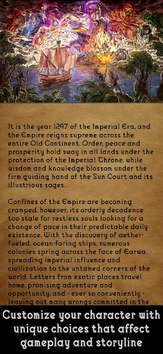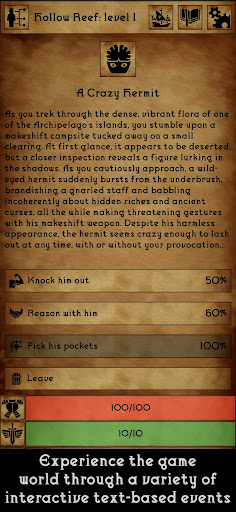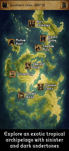 Grim Tides is a turn-based combat single-player game, with immersive lore, text-based events, customization options, and no microtransactions-based monetization schemes.