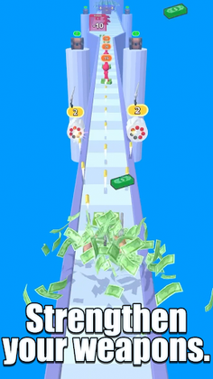 This is a running game where you gather various weapons, defeat enemies, collect money, and rush for the goal!
